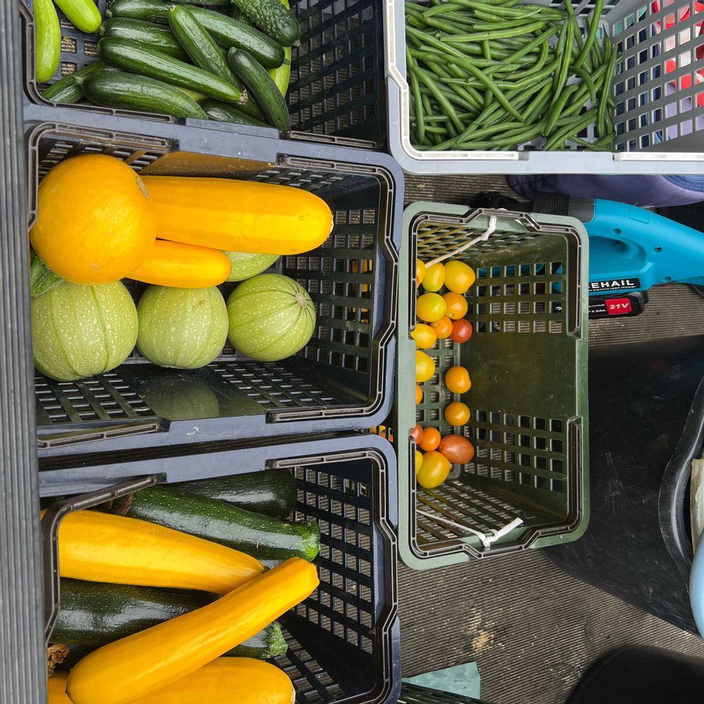 自家製のインゲン、ミニトマト、ミニキュウリが盛りだくさんであります。