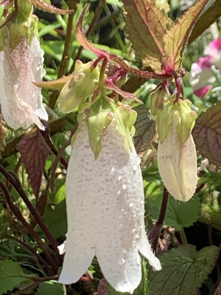 庭のホタルブクロさん💡蛍さんをここのお花に入れてあげるて、ステキな提灯🏮になるそうでー😊昔の子ども達はそんな遊びをしていたなんて、風流ですねー😍やってみたいですが、蛍さんがいません、いつかどこかでー🩷🩷🩷