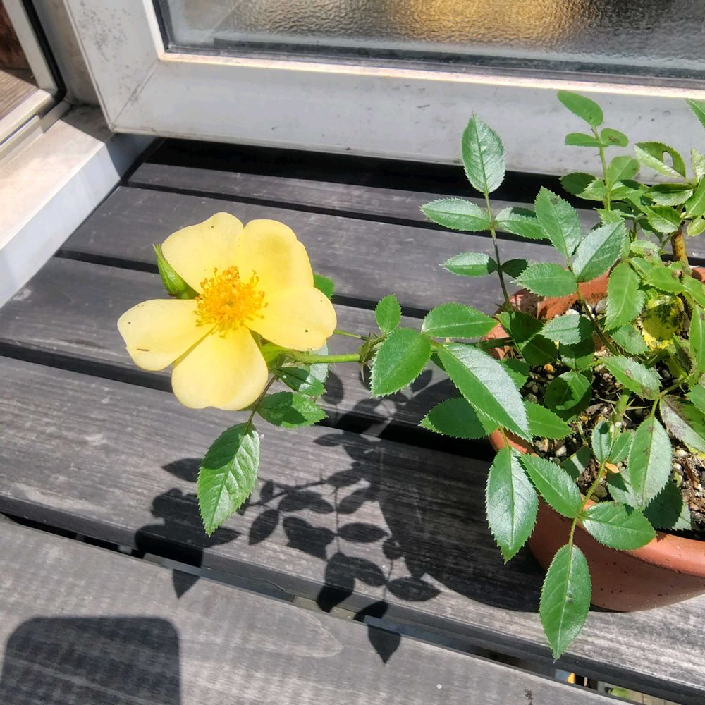 黄色の一重で樹高は15センチほどのミニバラです😀
