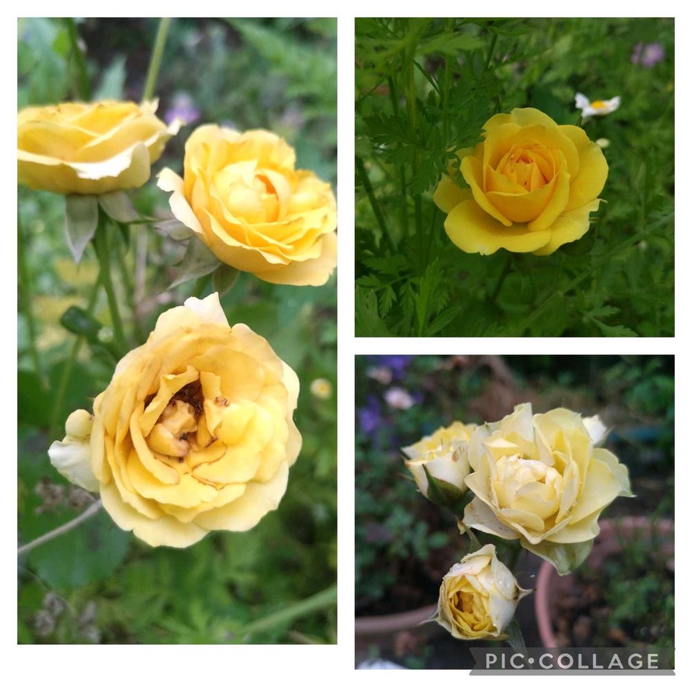 咲いた薔薇や昨日のミニバラ、挿し芽をした黄色の今日のお花薔薇。