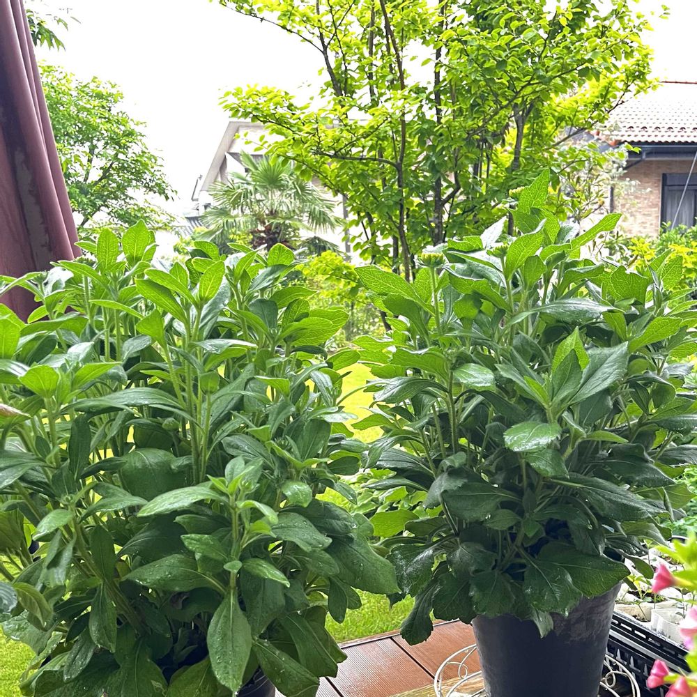 ルドベキア、もう咲きそう😍我が家でも庭で冬越せないのが多くて、諦めてました。室内で冬越し、ハダニとか暖房無しなら付かないものですか?霧吹きとかマメにしてましたか?