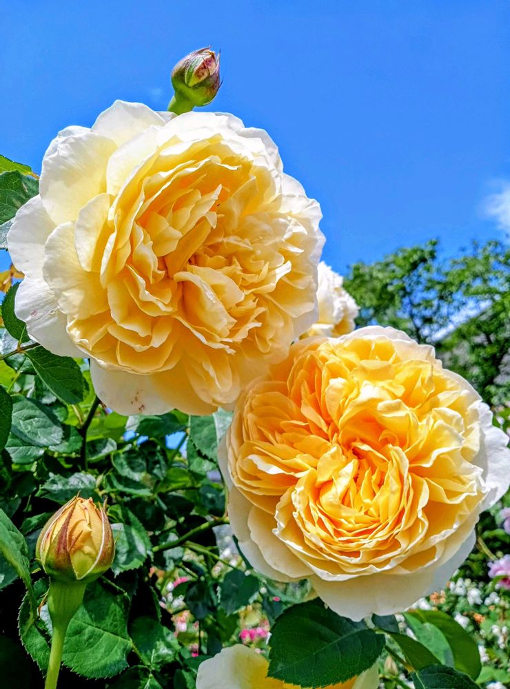 青空に際立つ、黄色の薔薇🌹綺麗やね🎵