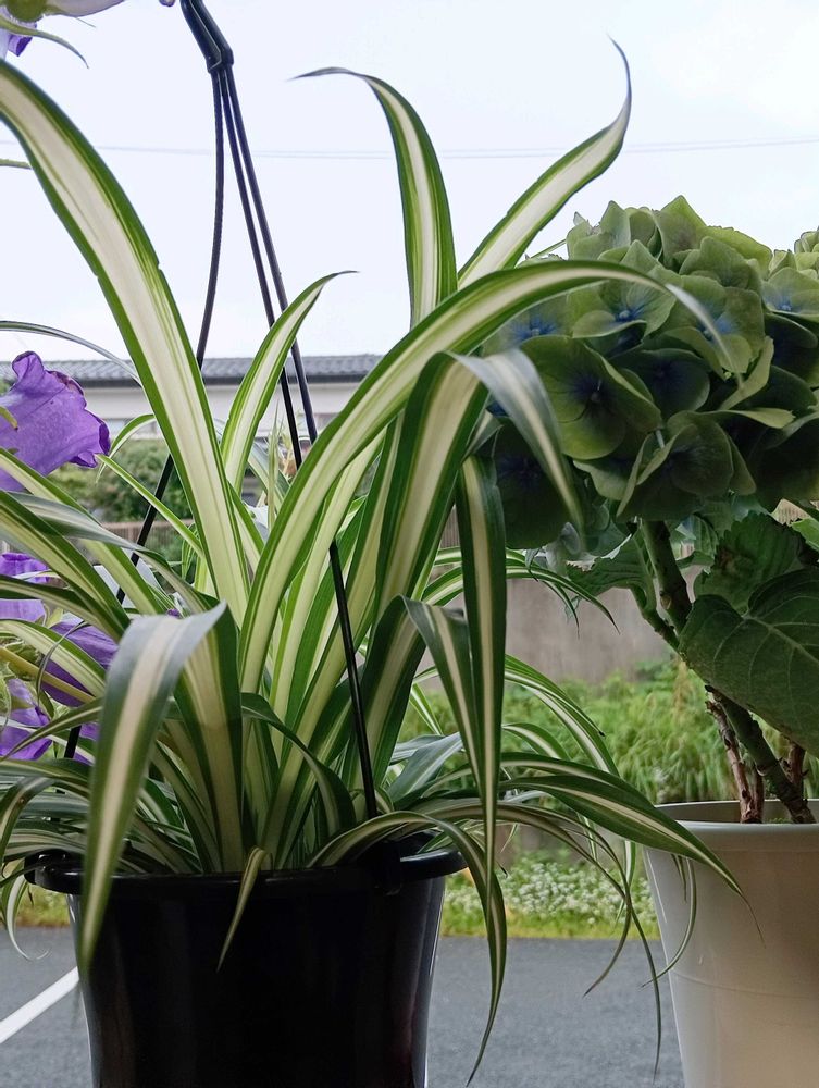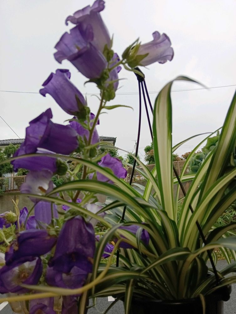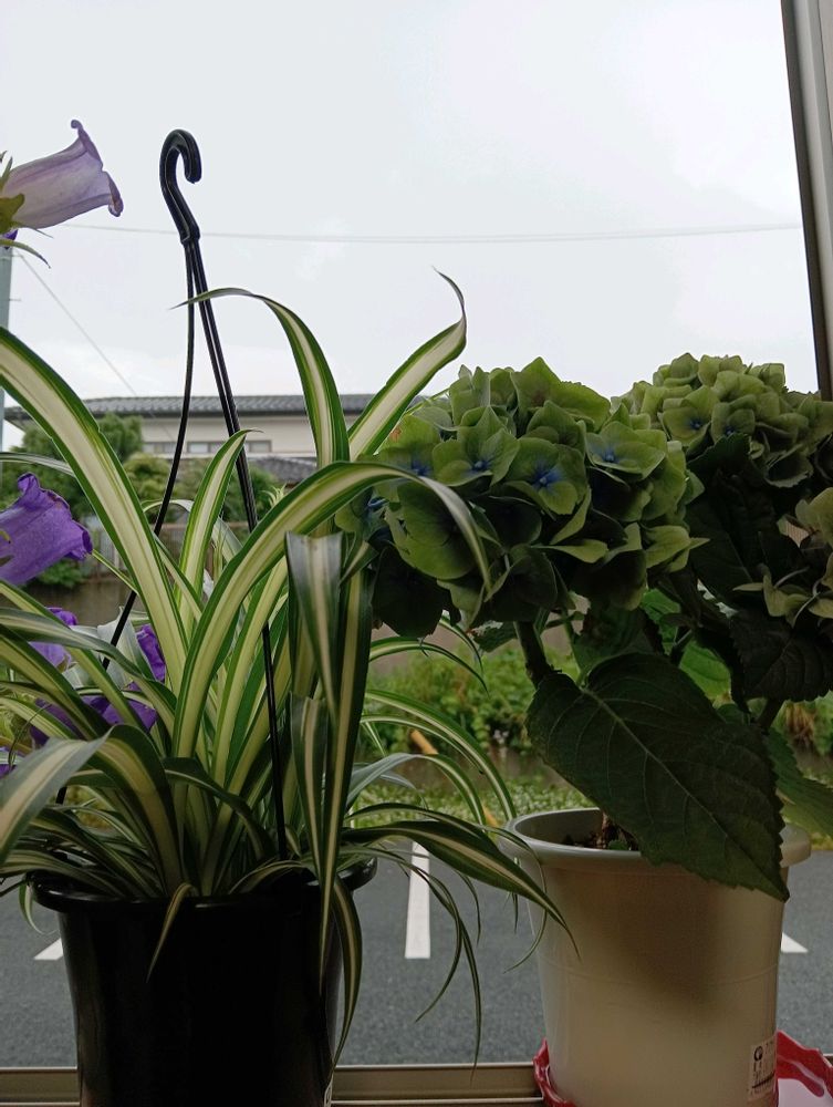 おはよう💙外は雨💙雨が以合う花💜カンパュラとあじさい💜