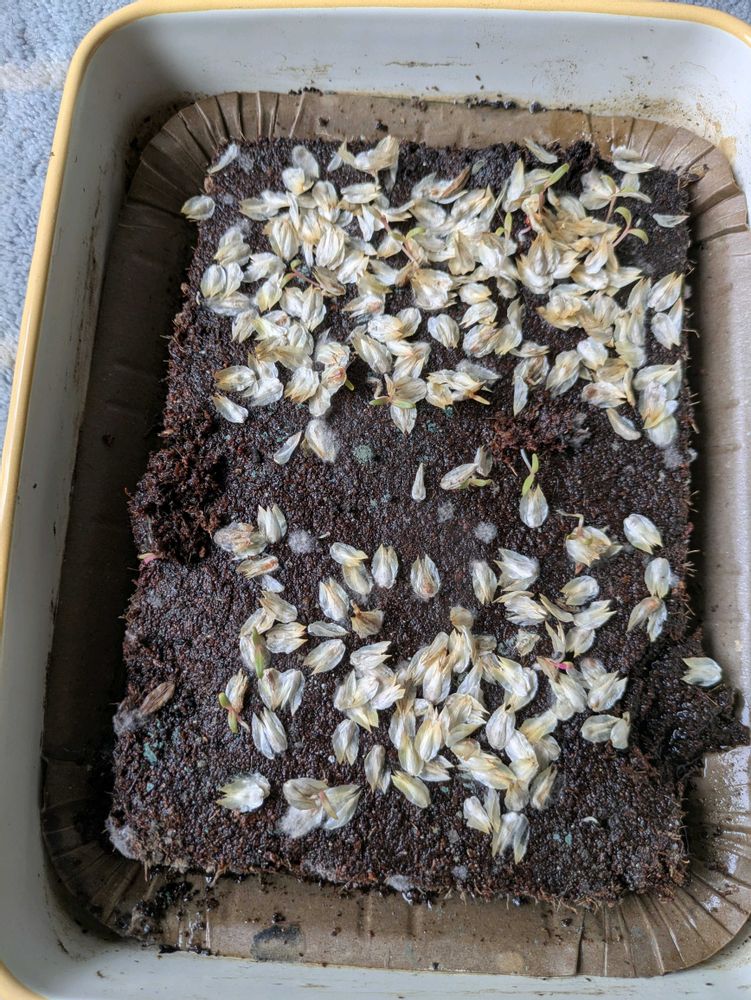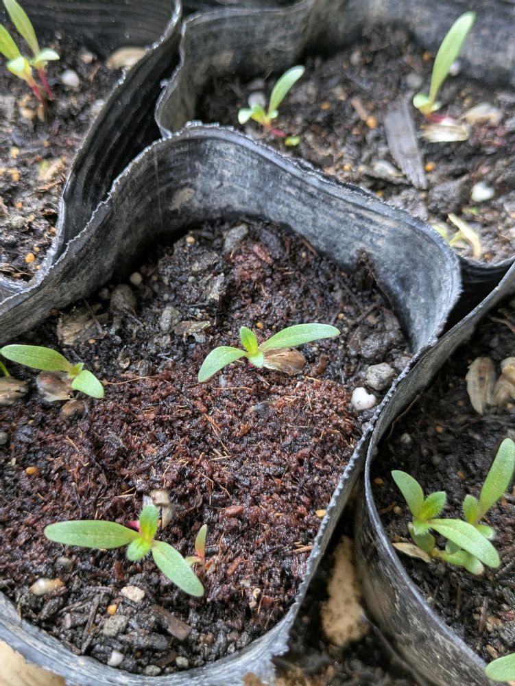 ④ 千日紅 ⑤ ピートバンに種まきして発芽した時