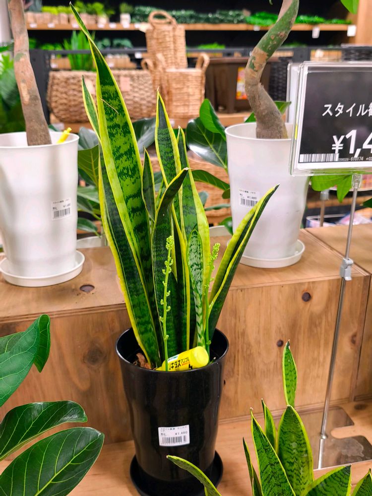 私が行ったのは田無駅の駅前の商業施設に入ってるカインズで、10鉢近くサンスベリアがありましたが花茎が付いてたのはこの鉢だけでした😅