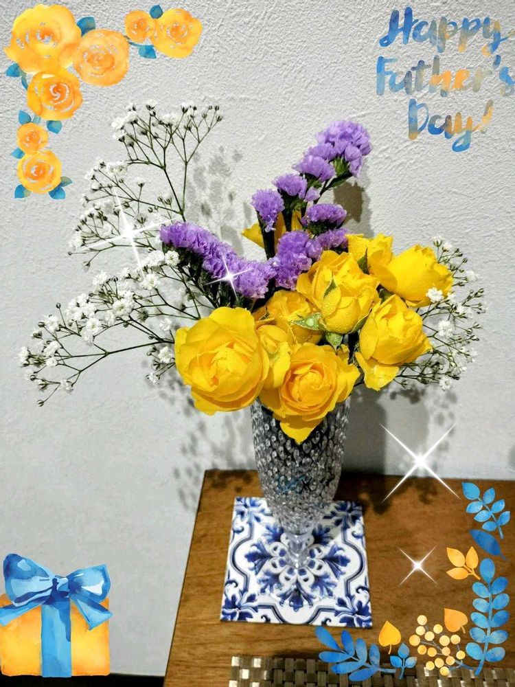 父の日用にアレンジメントをしたそうデス〜初めてにしては〜💮花○デスよネ~✌️👍👌孫バカで〜どうも~すいましぇ〜ん🙏🙏🙏