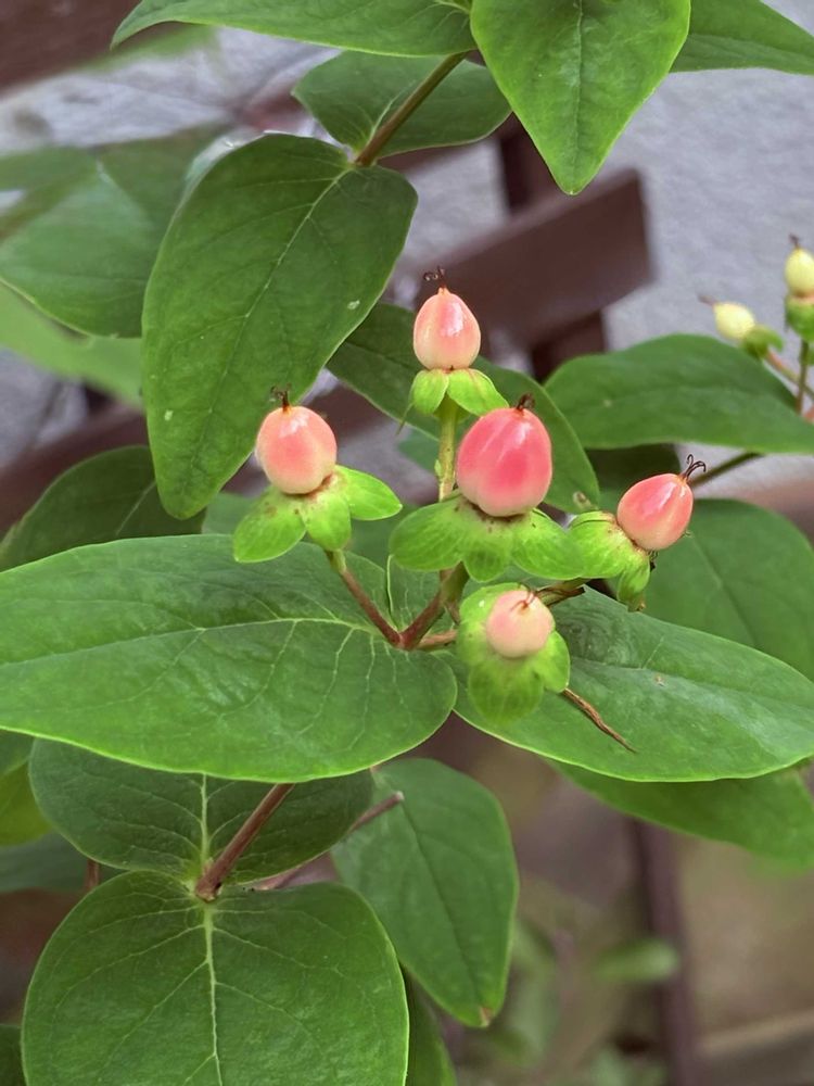 ヒペリカムの実が色づき始めています💕