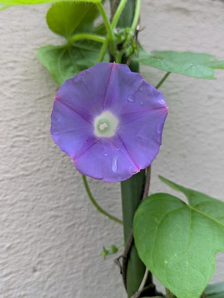 窓を開けたら ちっちゃい朝顔が1つ咲いてるので📱パチリ