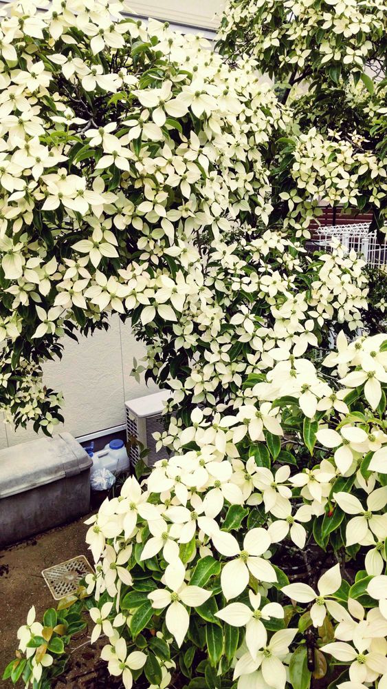 玄関の前に見事なくらい 真っ白のヤマボウシ 綺麗でした(◕ᴗ◕✿)