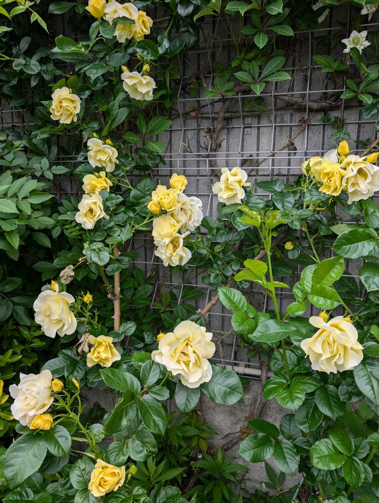 去年と同じですがスマイリーフェイスさんフリフリしながら一枝に沢山咲いて楽しいです💛🤍