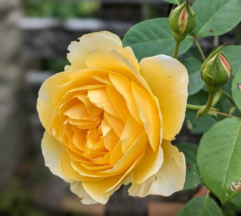 可愛い黄色い薔薇さん梅雨空に輝いていますね🌹💛🌹今日も素敵な一日にして下さいネ🤗💐💐💐🤗
