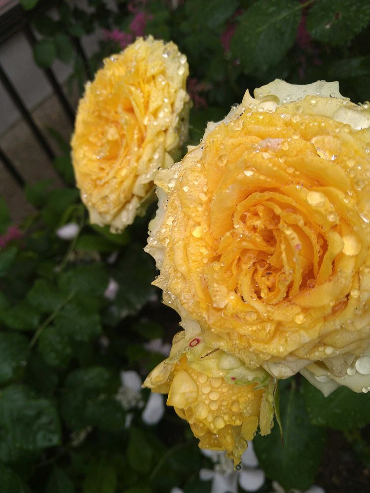 どちらも花持ちが良く☔の中頑張って咲いてます