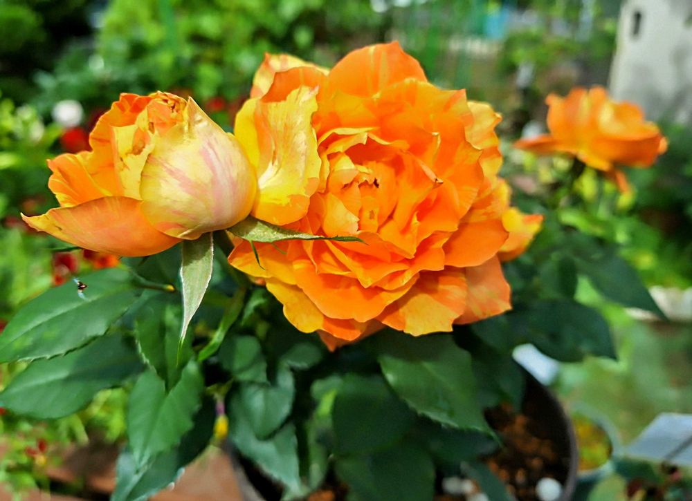 黄色とオレンジ色の斑入りで可愛い~ミニバラ(*≧з≦)💛🧡