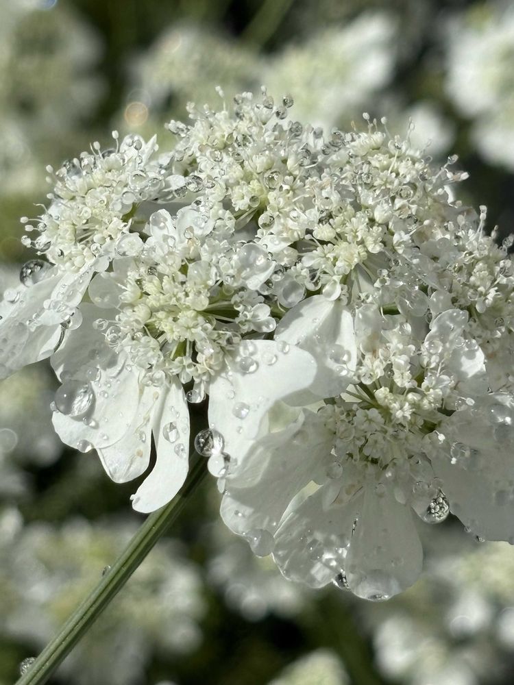 オルレア 増えすぎてるので、抜いてしまおうと考えていたところですが、今朝の雨粒を纏った姿につい見惚れてしまいました☺️