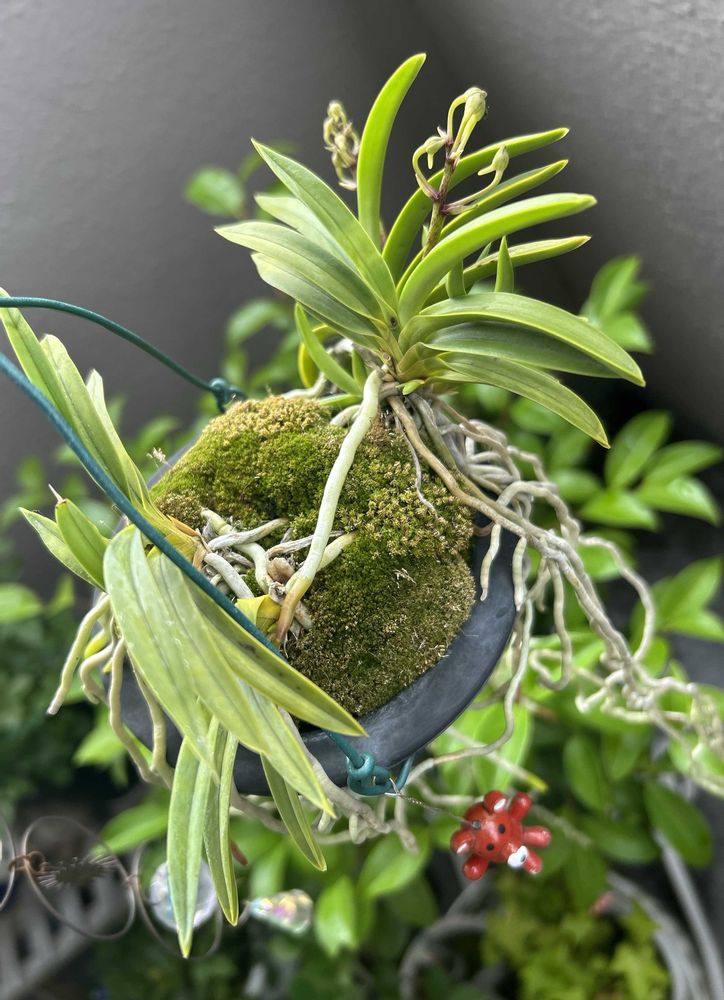 ありがとうございます😊ランの仲間で根っこが鉢の外に伸びるんです。うちのは白い花が咲きます。小さいですがいい匂いがしますよ〜