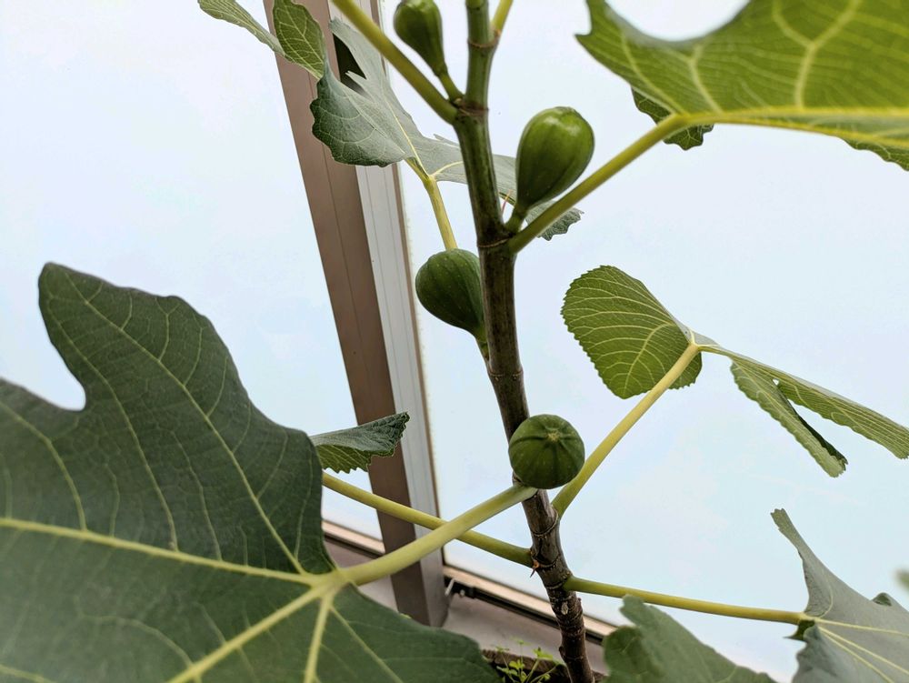 ベランダのイチジク。実がだいぶ膨らんできました。収穫が期待できそうです😄日よけにもなって一挙両得。
