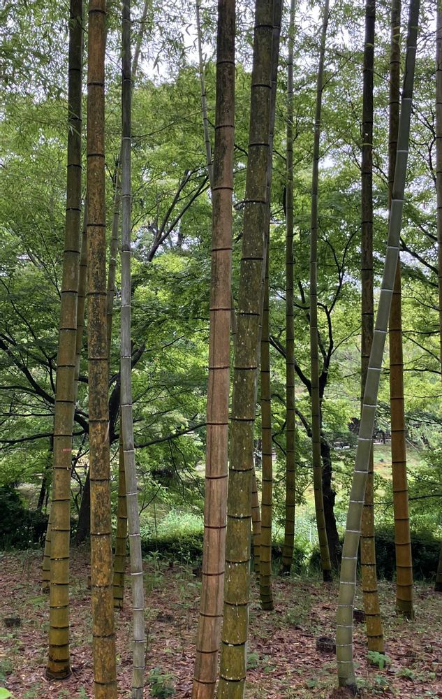黄土色、若竹色、銀竹色、まだらな色。同じ竹でもさまざまな表情があります。風のない音のない空間がありました。素敵な日曜日になりますように🤲