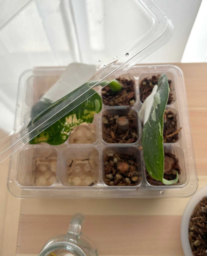 2025.8月に某サイトで購入した【アロカシア チャイ】の 突然変異?なんだろう 購入時、元々有った葉を(1枚目の葉)として、 下から新たな葉が出てきてる状態で到着しました(2枚目の葉) こちらに来て初めて出てきた葉に異変が。。 育て始めて出てきた初めての3枚目、4枚目 (途中から、斑1、斑2、、と続きます) どこまでこの謎の斑入葉が続くのか、 いや止まるのか……記録していきます