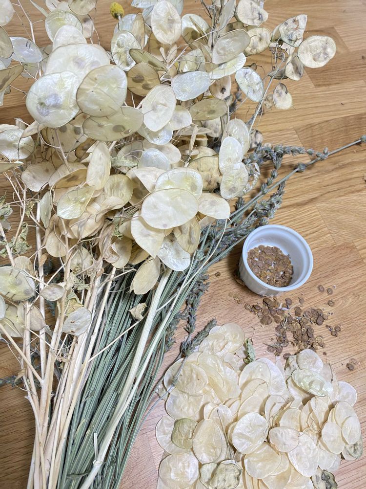 そんな午後ですが、2年前から育ててやっと収穫したルナリアのドライフラワーの皮剥きを始めました