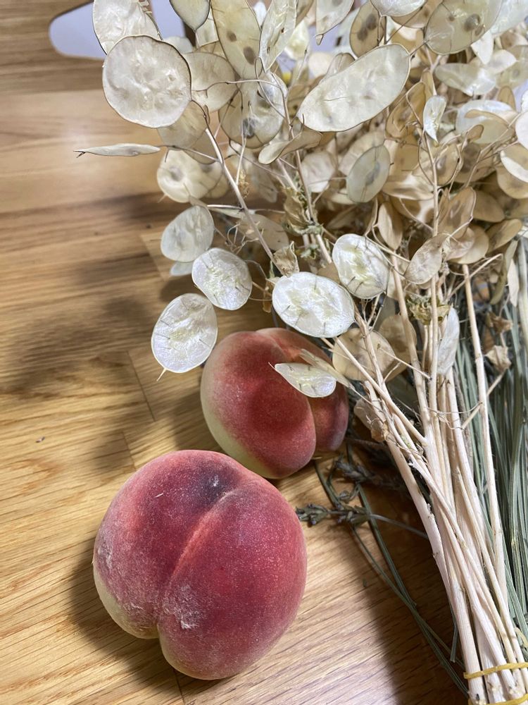 3枚目は昨日雨の中桃のボランティアにいってもらってきたお裾分けのハナヨメ🍑