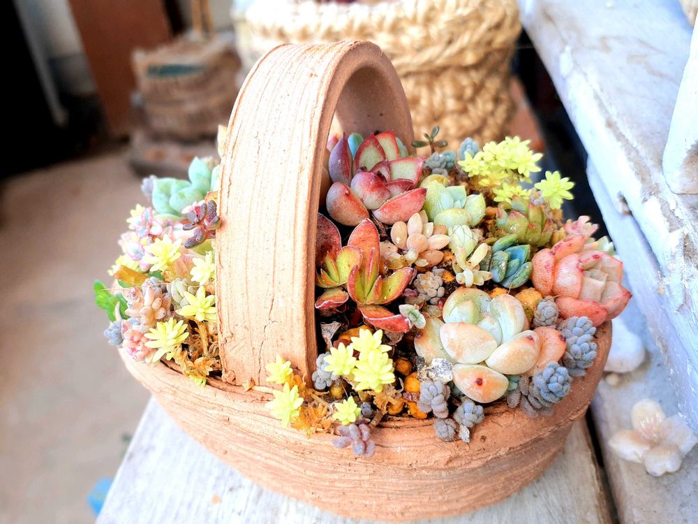 バスケットに、可愛い寄せ植え素敵です。誰かくれないかな~回りに多肉してる人居ないなー🌹は、近所の人にあげるけど何ももらったこと無いなー。あげるばっかりです。ガーデニングは、近所されてるんですが