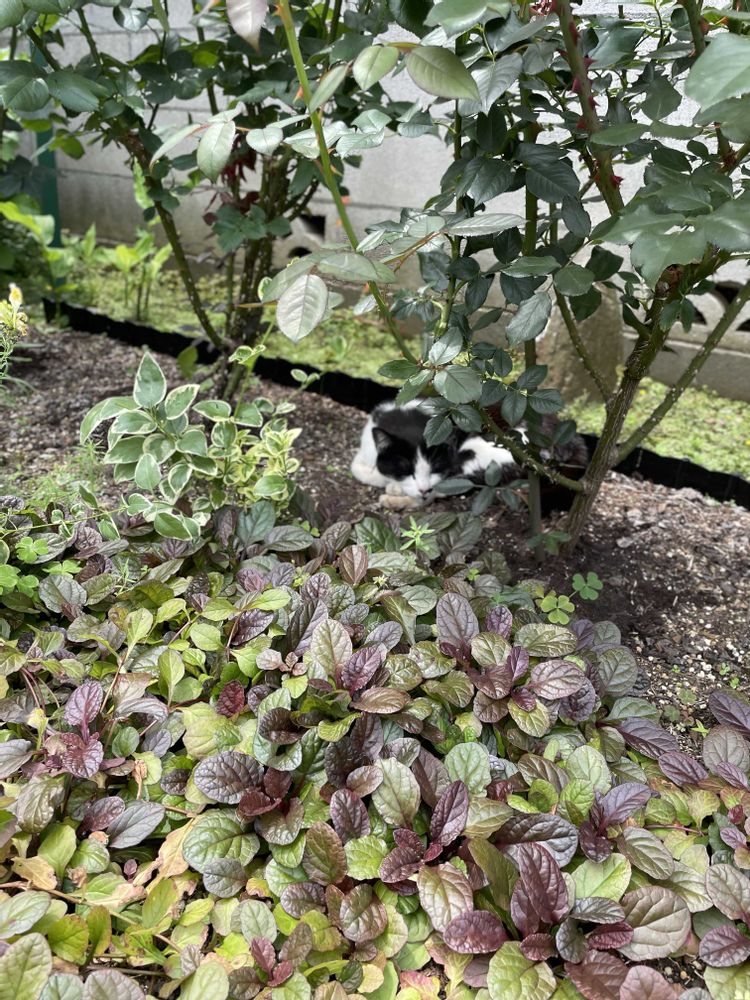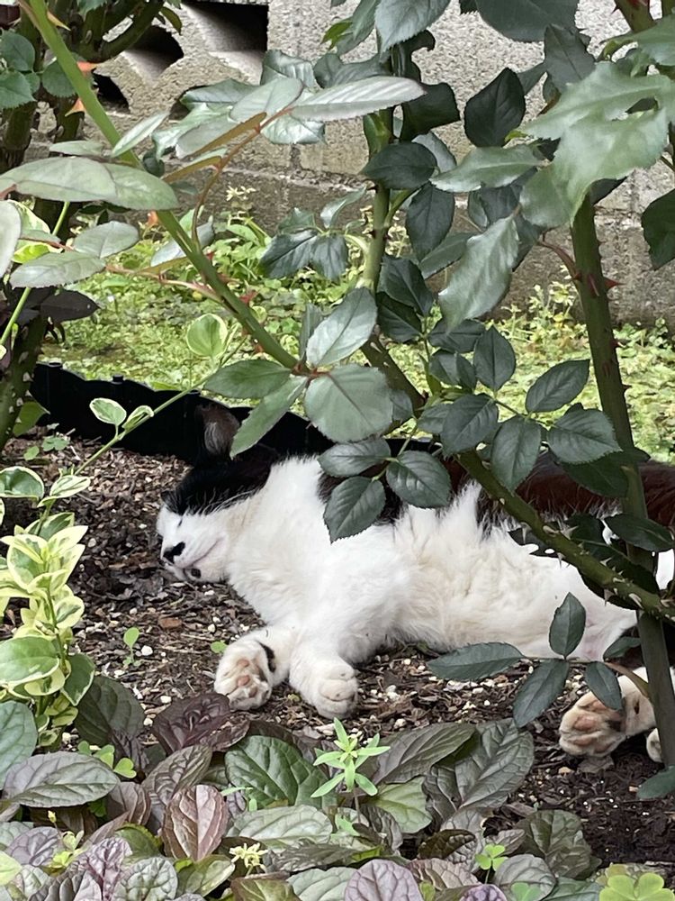 この日は、柔らかい、バラの根元でリラックスしていました。
