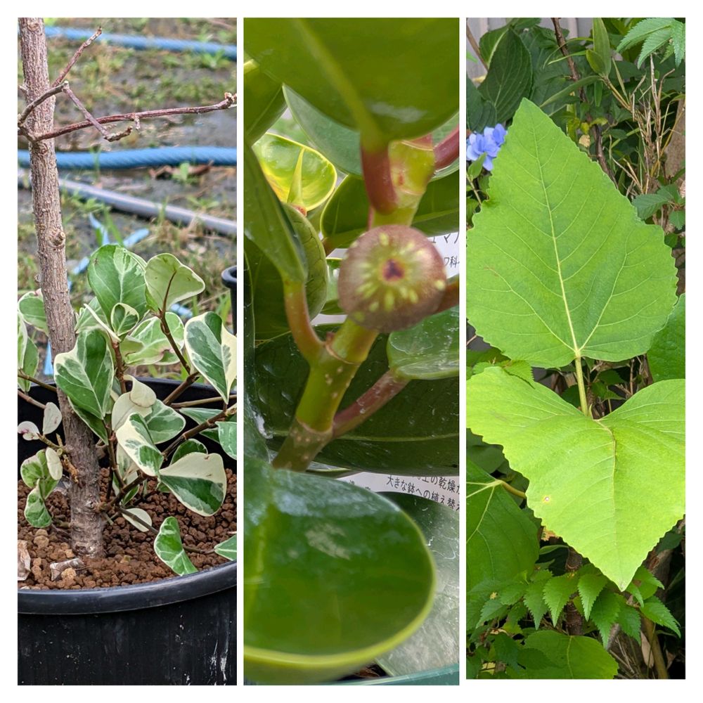 スイートハートの取り込みが遅れ枯れたか残念と思いきや芽を出し成長中〜子パンダは調子悪いせいかイヌビワの様な実が〜無花果はラベル紛失の為名前不明だがウンベラータの様な葉が同じ仲間なんだな〜とワルダクミの策を練る毎日