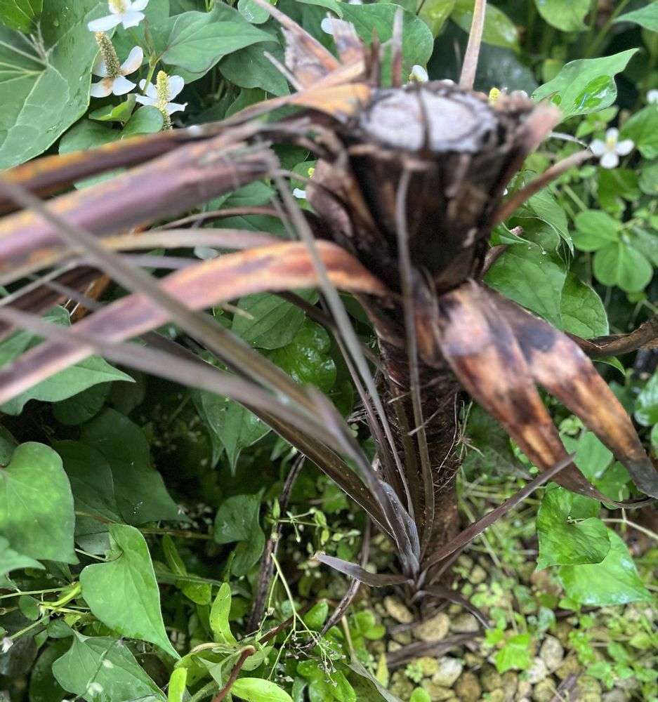 昨年の夏、蒸れたからか腐ってきたため、🪚でカットしたら枯れ込んだ地植えのコルジリネレッドスター。枯れたと思ったので防寒対策もせず抜きもせず放置していました。