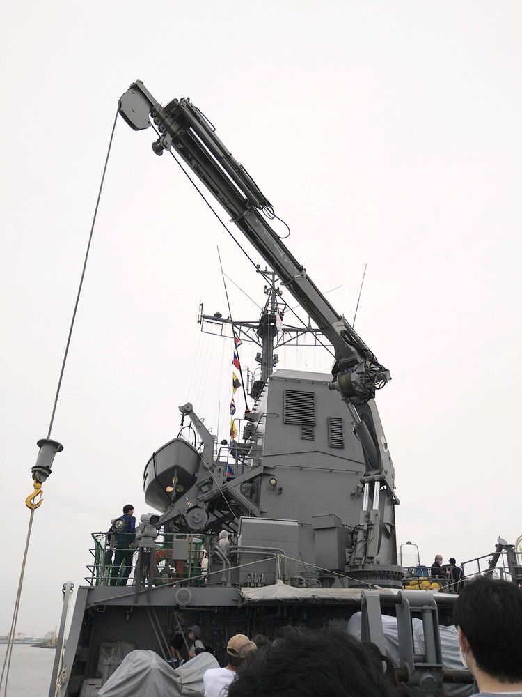 すおうは多目的支援艦なので災害時や緊急時にはクレーンで救急車を吊って艦に載せる事ができるそうです✨