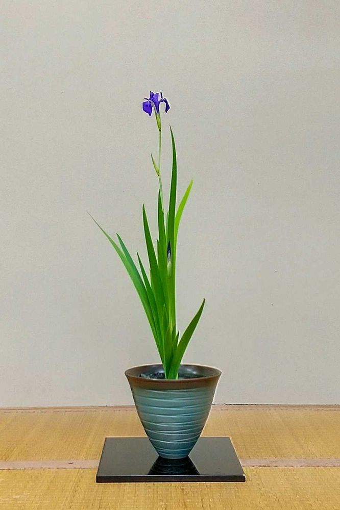 ただ、個人的には水盤では左にフトイ右に燕子花などのニ株生けるのが好きです。