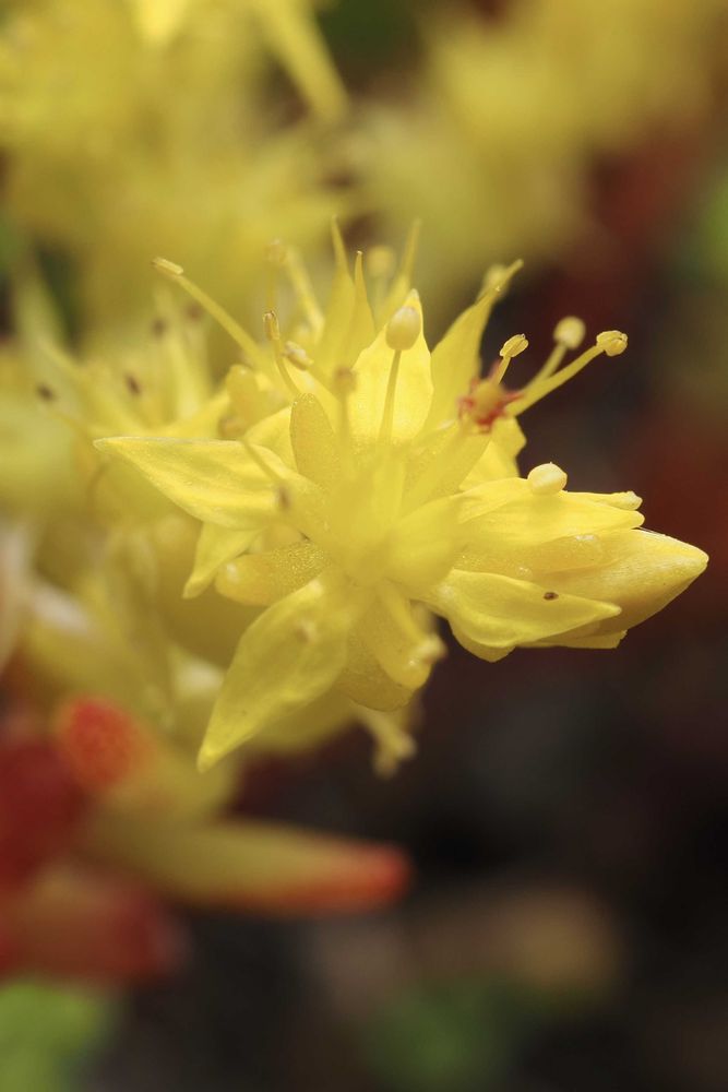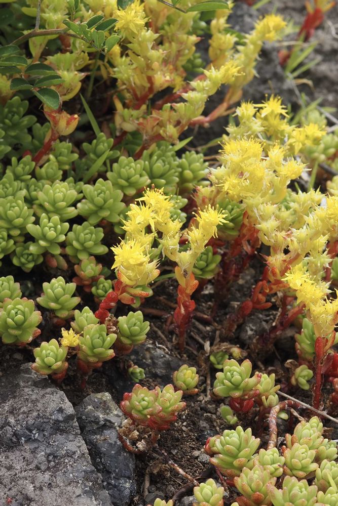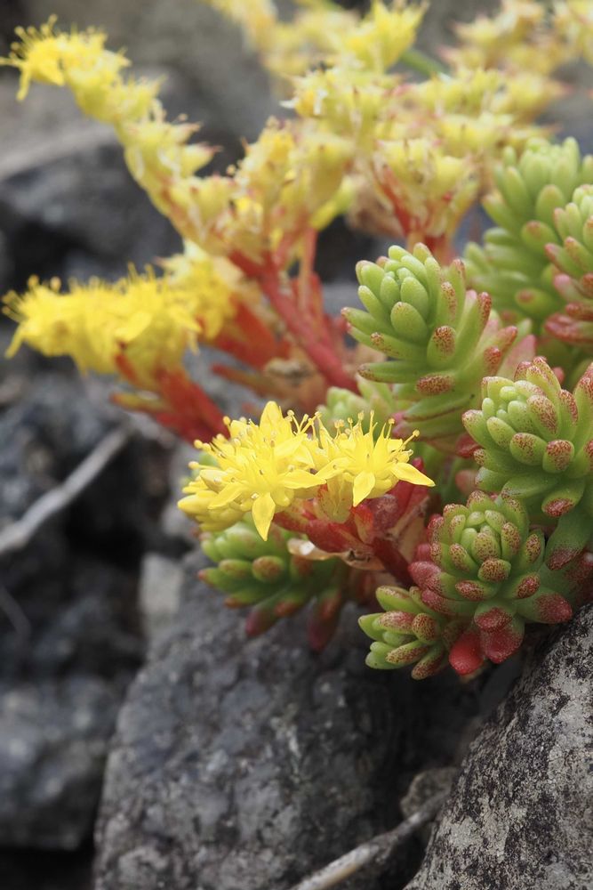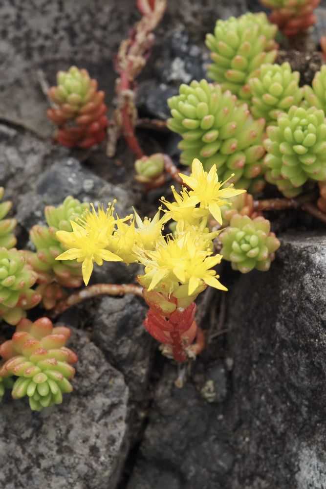 メノマンネングサ (雌の万年草)ベンケイソウ科マンネングサ属の多年草。角田山灯台コースの岩場に群生しています。最盛期はペンキをぶちまけた様になります。スプラトゥーンの世界です。