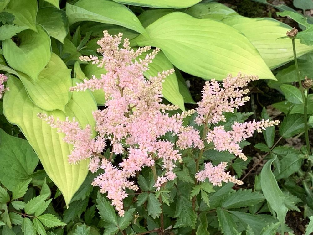 グリーンを背景にするとピンクのアスチルベが映えますね〜