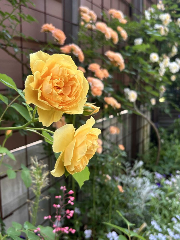 バックのつる薔薇2種類もキレイに咲いてましたね〜😍🧡