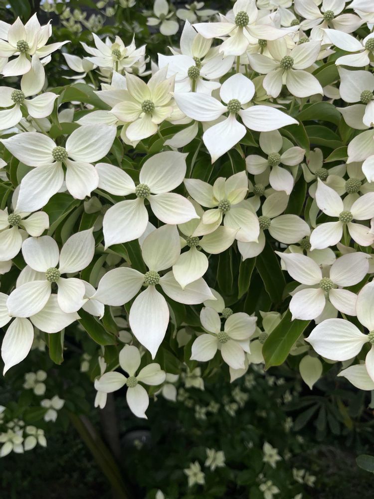 こんばんは。10日前くらいのヤマボウシとアジサイです。
