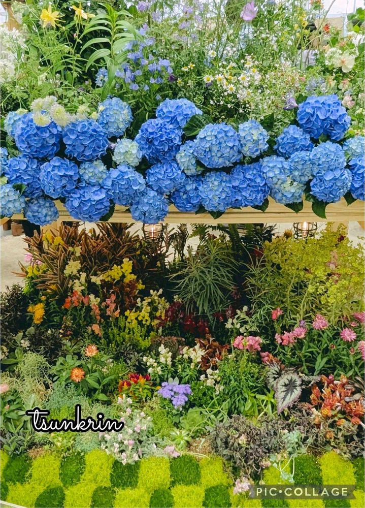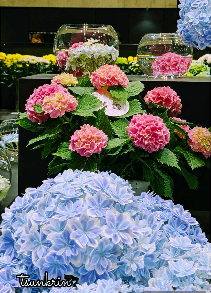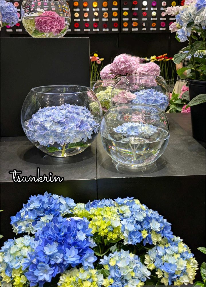 横浜フラワー&ガーデンフェスティバルにて アジサイのブルーが、ガラスの器と相まって、ミラクルな世界へいざなってくれました。