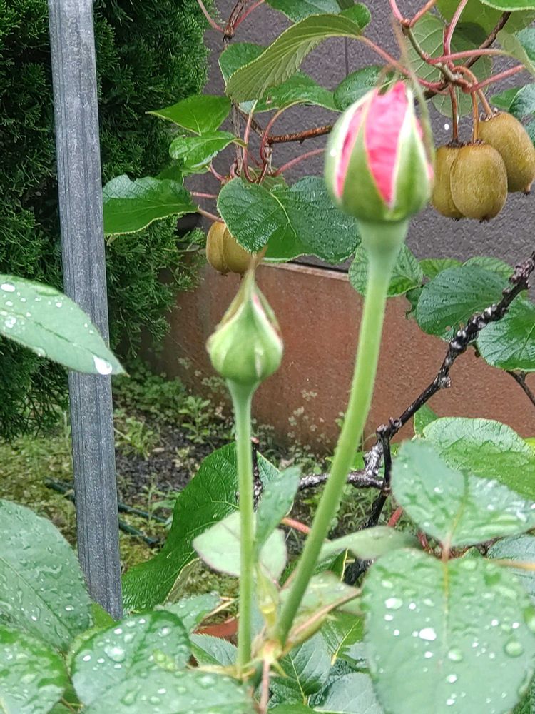 じゃあ、薔薇の後ろにあるキーウィ🥝でも食べて、色気より食い気で行きますか❣️🥝✨😋😁👌♫