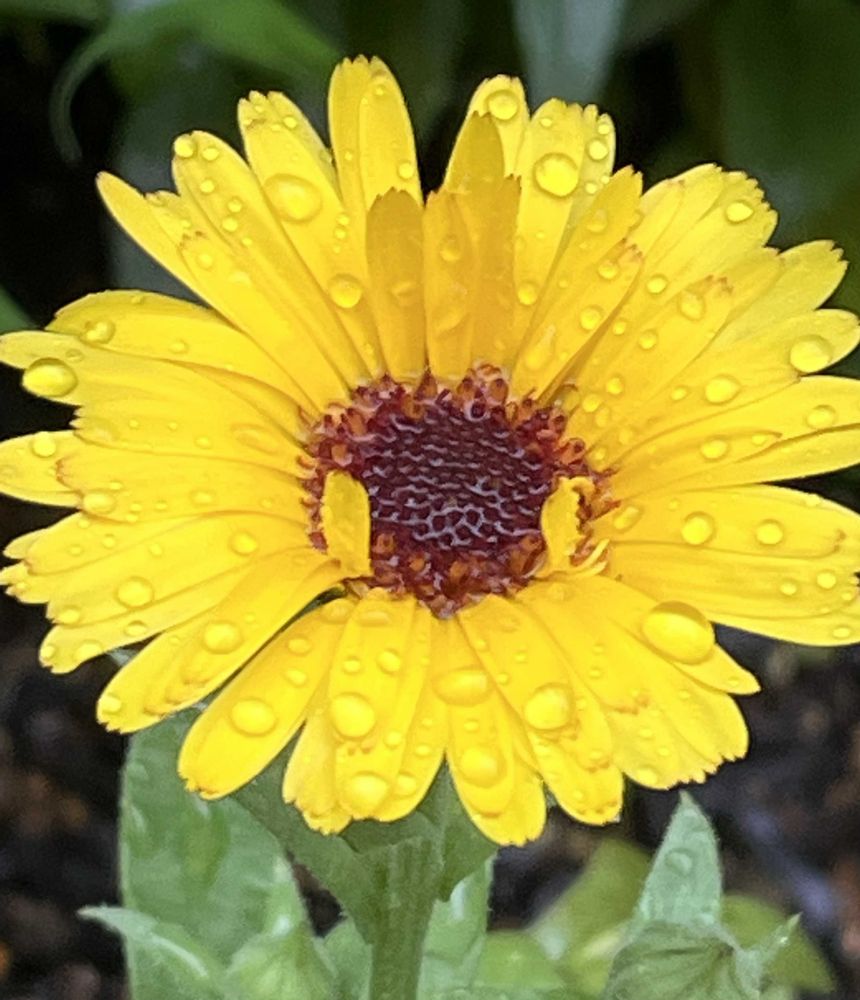 畑の番人ですが、雨に濡れて花🌼が直ぐに傷みます。