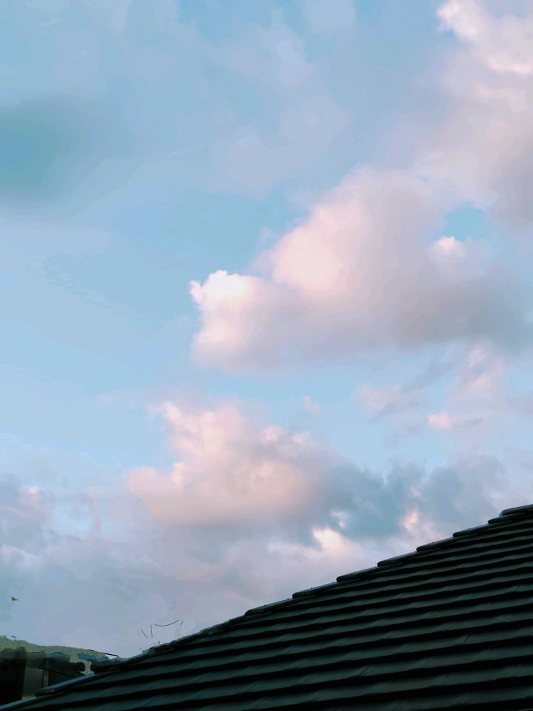 ⑤…暑くなるよ〜👒と話しかけてくれる 朝日に輝く雲…🤍🩵🧡