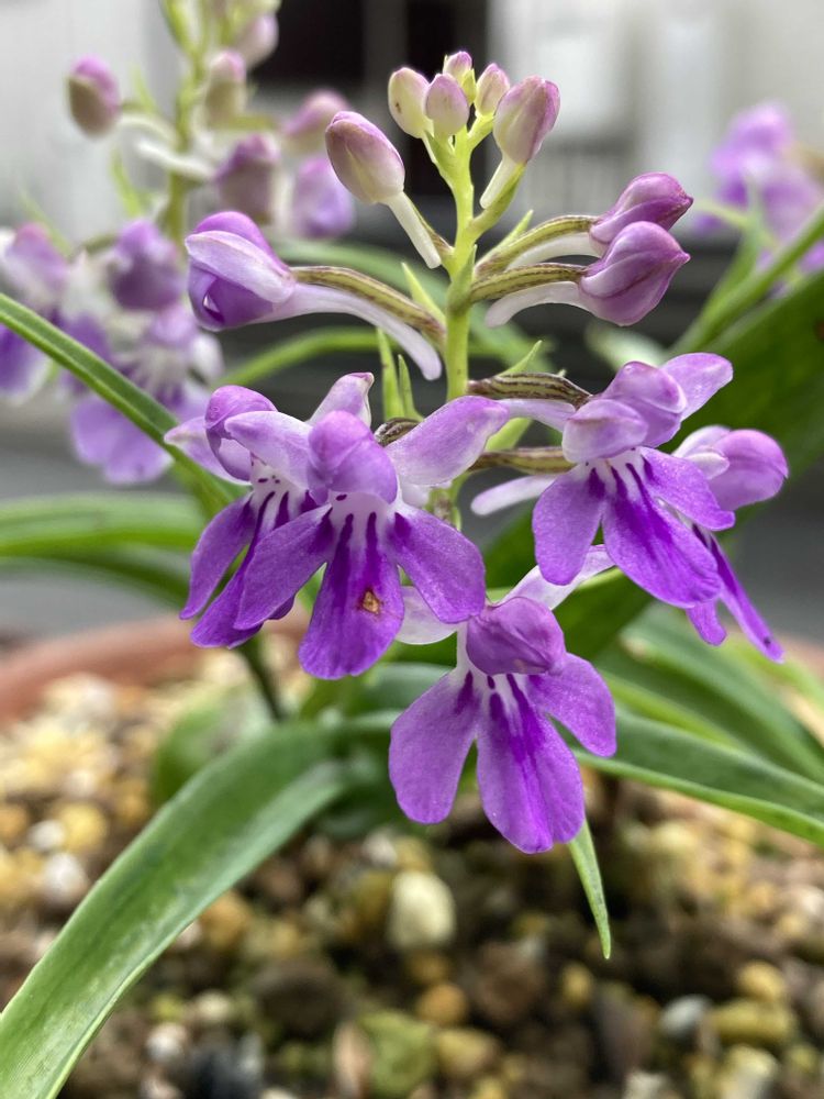 このアワチドリは野鳥の会の先輩に頂いたもので我が家に来て10年ほどになります。この色と白色を頂きました。この薄紫は複数本に増えましたが、若干色に濃淡が発生しています。これは我が家で一番濃い色です。