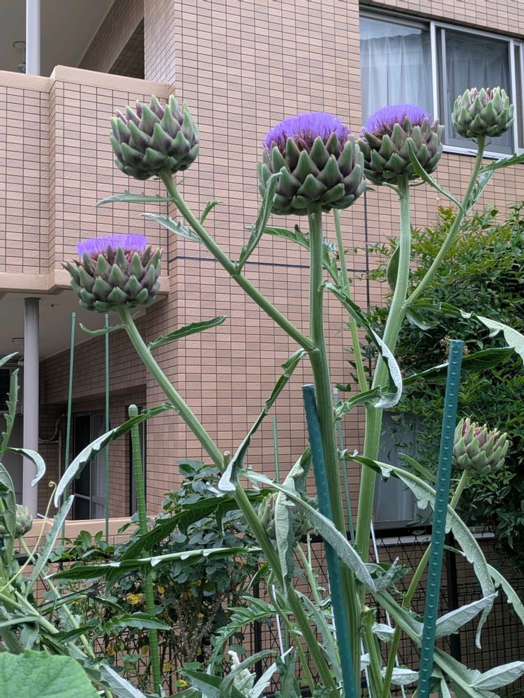 アーティチョークの、大きさは、育てて初めて実感しました。💜💜💜