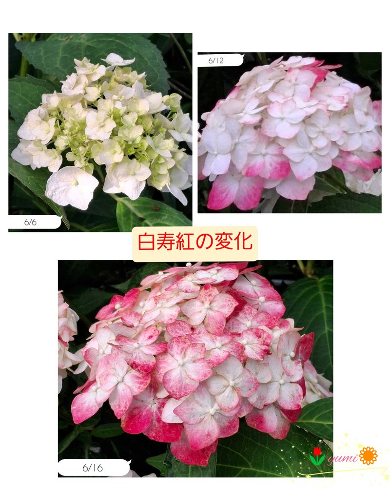 こちらの白寿紅というあじさい、初めてお目にかかりました〜✨素敵なあじさいですね〜色合いが変化するなんて〜😍