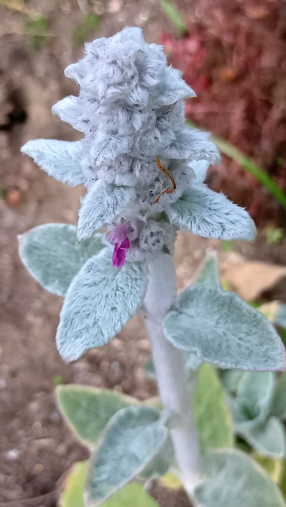 庭植えにしたラムズイヤーさんが、咲きました。🥰