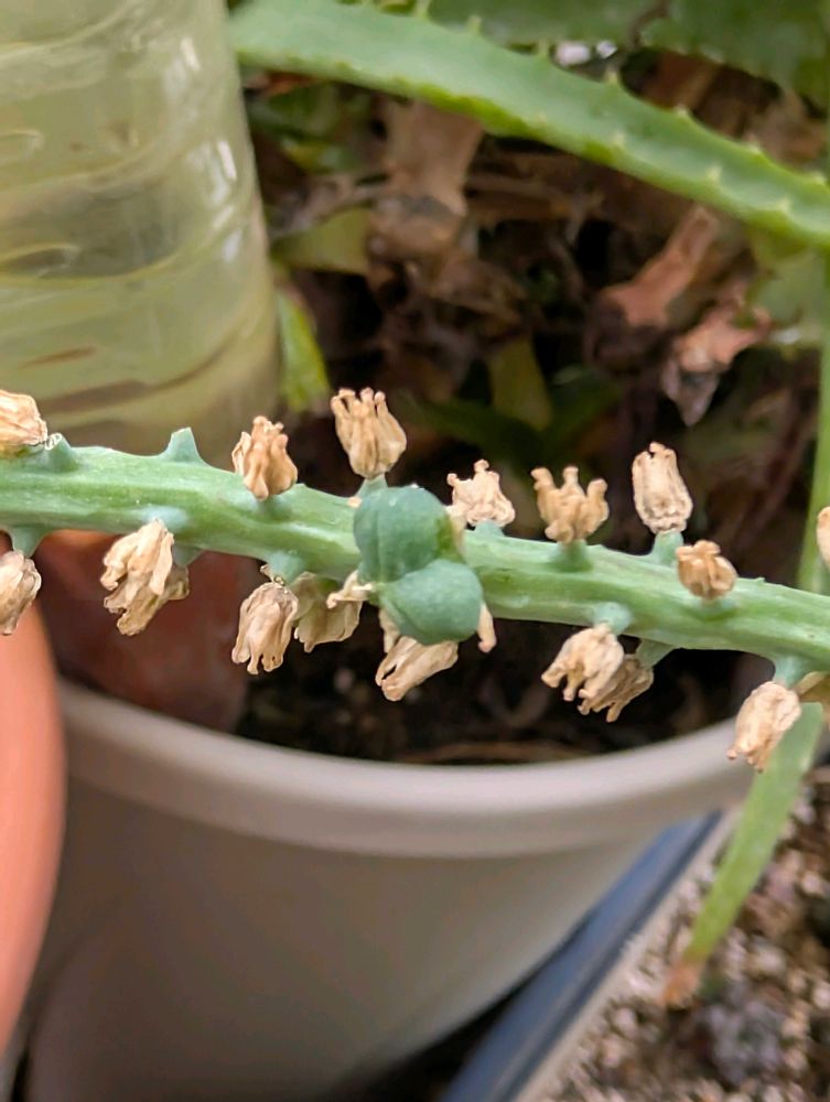花のあとにコブのようなものが出来てます。もしかすると種でしょうか?🤔