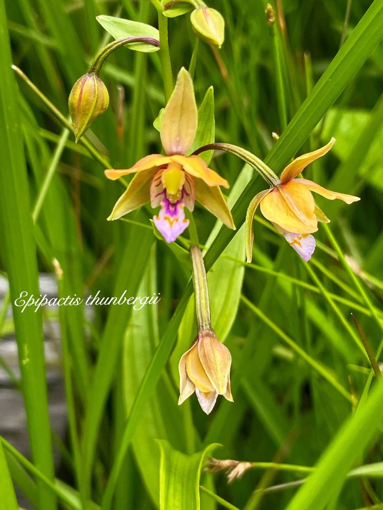 湿地に咲くカキランさん、梅雨時を明るくしてくれる可憐なランですョ💛🧡