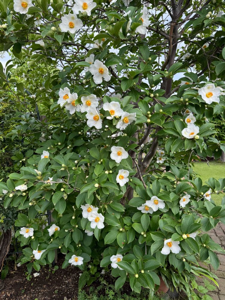 シャラは一日花なので、毎朝の落ちた花びらの掃除が日課になりつつあります。(笑)