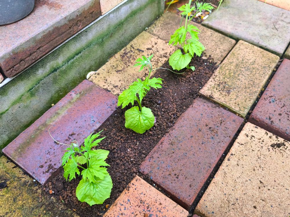 通路だけのような狭い庭なのでこれが精いっぱいの家庭菜園です😂