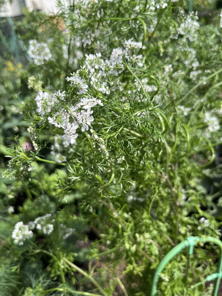 こぼれ種でコリアンダーとディルが育っています。ディルは特にきゅうりやトマトとバルサミコ酢であえると美味しいですね😋