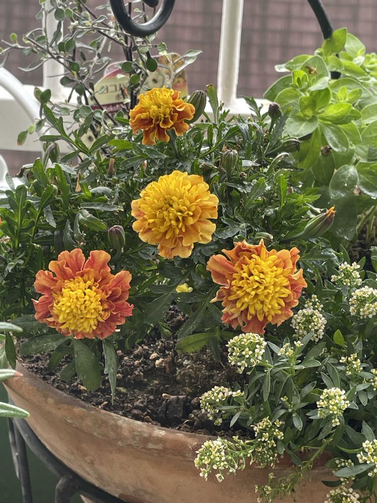 金曜に撮ったマリーゴールドの寄せ植え🌼