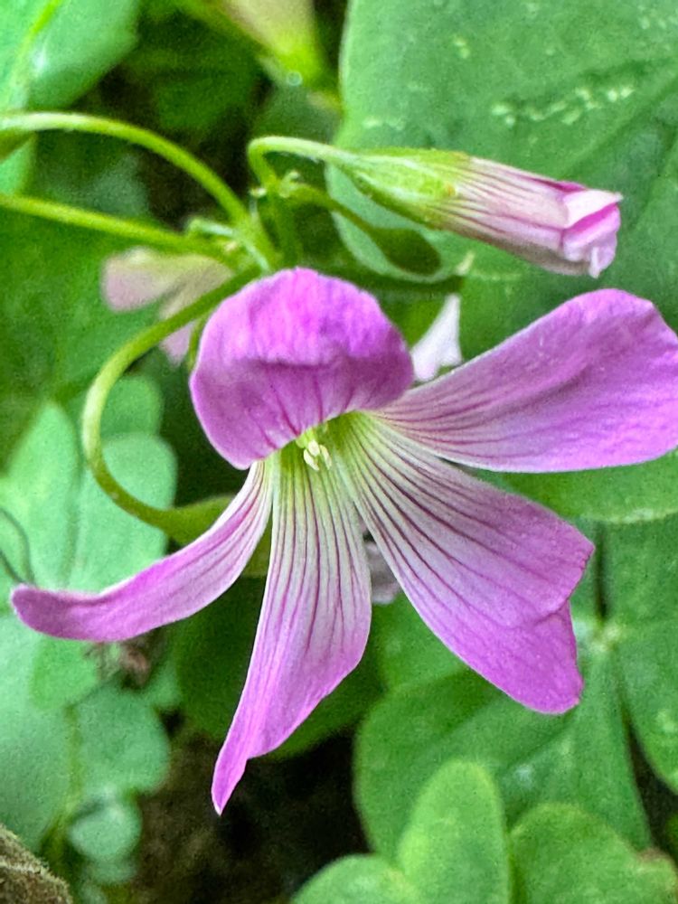 白い花弁に淡紅紫色の筋の入る清楚なカタバミ