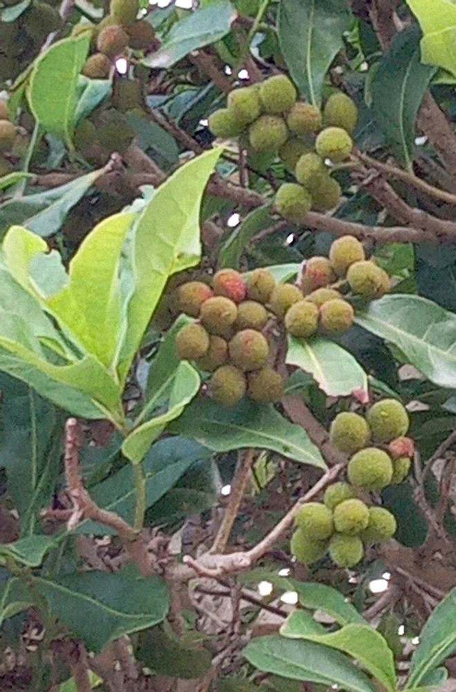 ④⑤は、以前コーポの駐車場で見た大きな木。葉だけでは分からずGoogleで見たらヤマモモと出た。今回たくさん実がなり落ちていたのを見たら、確かにヤマモモの木だなあと納得。